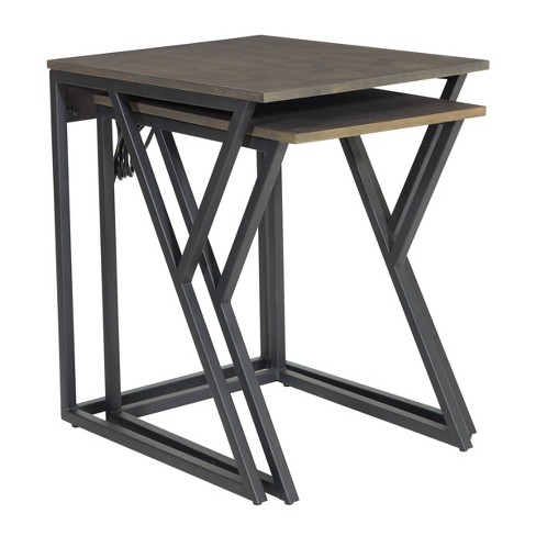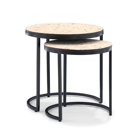 Hand forged of iron with an aluminum top. Duke 19 round metal nesting nightstand. ( 0.0) out of 5 stars. 4.3 out of 5 stars. Vibrant colors set the tone for this set of two contemporary nesting accent tables.